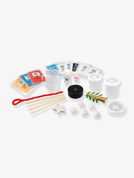 - Contient une base lumineuse, un pichet, deux gobelets, un bâtonnet en bois, diverses poudres et solutions liquides