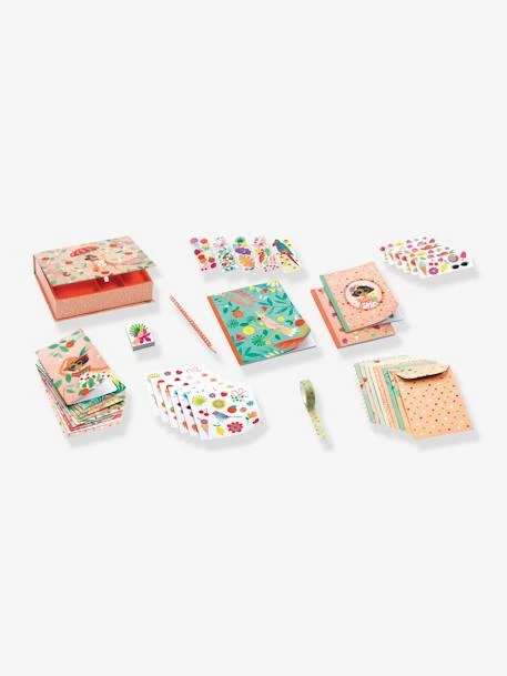 Avec ce coffret complet, les enfants pourront écrire, dessiner et créer grâce à de nombreux accessoires de papeterie aux couleurs du thème poétique Marie de Djeco.