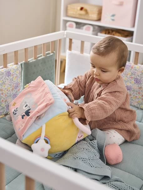 Un grand cube ultra moelleux dans lequel se cachent 3 balles d’éveil sensoriel. Votre enfant s’amusera à les attraper, puis les remettre dans le cube en plongeant ses mains dans un intérieur teddy très doux. Il passera des heures à s’éveiller tendrement grâce aux multiples activités de ce cube aux mille surprises !