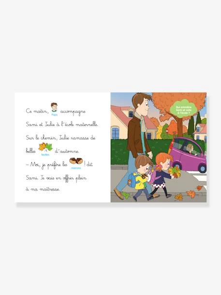 Vivez avec Sami et Julie une journée à l’école maternelle : l’arrivée dans la classe, l’activité de motricité, la cantine, la sieste, la récréation… Cette collection de lecture à deux voix, dans laquelle l’adulte lit le texte et l’enfant nomme les mots illustrés, permet à votre enfant de structurer son langage, de se préparer à l’apprentissage de la lecture, et de comprendre ses propres émotions grâce à des thèmes qui lui sont familiers. Des petites histoires qui font parler les enfants ! Le petit plus : un documentaire sur les activités que l’on pratique à l’école maternelle.