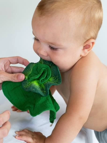 Les fruits et légumes d’Oli&Carol sont maintenant transformés en Mini Doudou pour que les tout-petits se sentent à l’aise partout où ils vont ! 2 en 1 : c’est à la fois un doudou et un anneau de dentition ! Le coeur du chou Kendall est en caoutchouc et les feuilles en mousseline de coton. Les deux parties sont amovibles ce qui permet de les laver séparément. Kendall le Kale est un mini doudou ergonomique facile à attraper, que bébé va adorer câliner et mâchouiller.