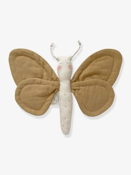 Ce joli papillon est un parfait compagnon de câlin avec ses ailes douces et ses caractéristiques sensorielles. Il est décoré de nœuds et de beaucoup d’autres jolis détails.