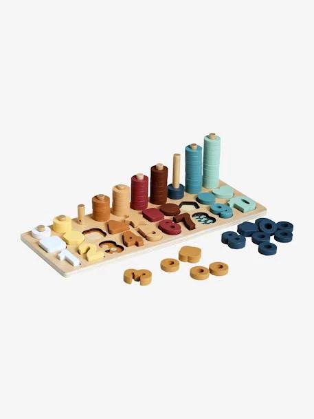 Une belle planche colorée pour découvrir les chiffres par le jeu. Chaque couleur correspond à un chiffre, une forme et des pions à empiler. Pour apprendre à dénombrer, les enfants doivent empiler le nombre de pions qui correspondent au chiffre du bas sur un bâtonnet. Une manière ludique de se familiariser avec les chiffres.