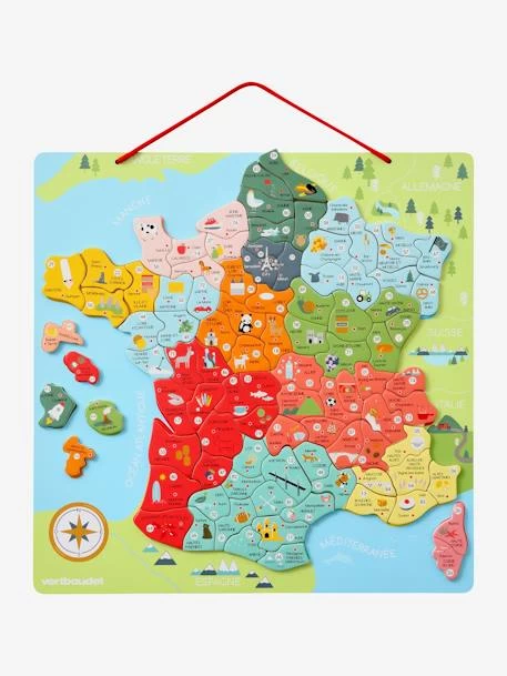 La France et ses départements n’auront plus de secret pour votre enfant ! Avec ce puzzle magnétique, découvrez les villes, les départements, les régions et leurs spécialités. Un jeu éducatif qui apprendra aux petits la géographie et rafraîchira la mémoire des grands !