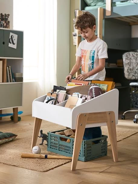 Inspiré des meubles de rangement pour vinyles, cette jolie bibliothèque en reprend les codes et les modernise avec un style scandinave. Muni de 4 compartiments en hauteur, votre enfant pourra choisir facilement ses livres !