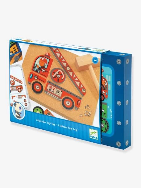 Tap tap véhicules, un classique des activités de maternelle revisité par Djeco pour développer la dextérité des plus jeunes. L’enfant construit ses propres voitures et camions en plaçant les pièces sur le support en liège et en les fixant à l’aide des petits clous et du marteau. Il reproduit les modèles ou fait appel à son imagination pour créer ses propres véhicules à l’infini ! Le tout dans une jolie boîte en bois !